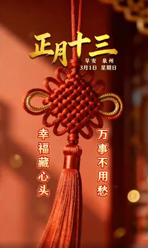 正月十三,祝福接二连三,天天好运到,日日福星照,幸福藏心头,万事不用愁。早安泉州!