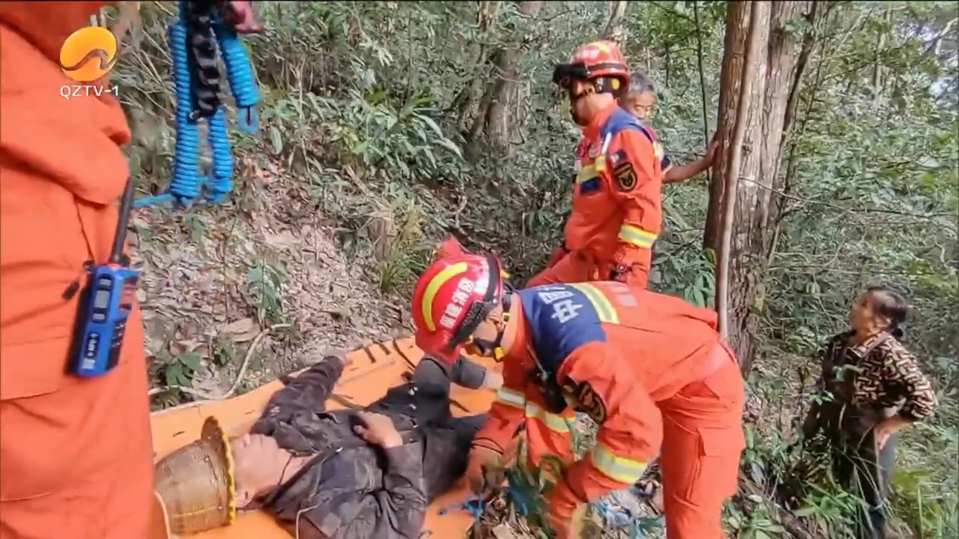 山石砸伤伐木工人 消防接力转移伤者送医救治