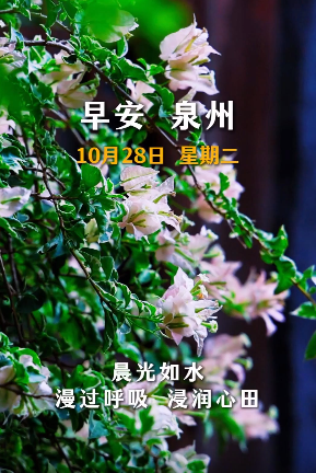 今天是10月28日,星期二,农历九月初八。早安,泉州。心若容器,盛满安宁,便无惧外界的纷纭。