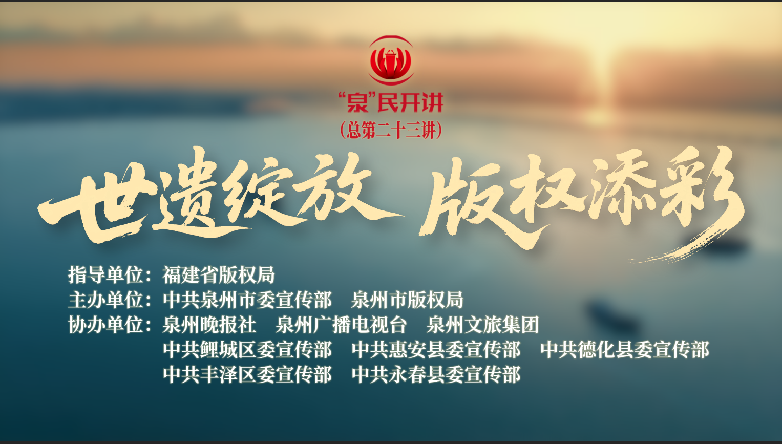 直播:“泉”民开讲 | 世遗绽放 版权添彩(总第二十三讲)